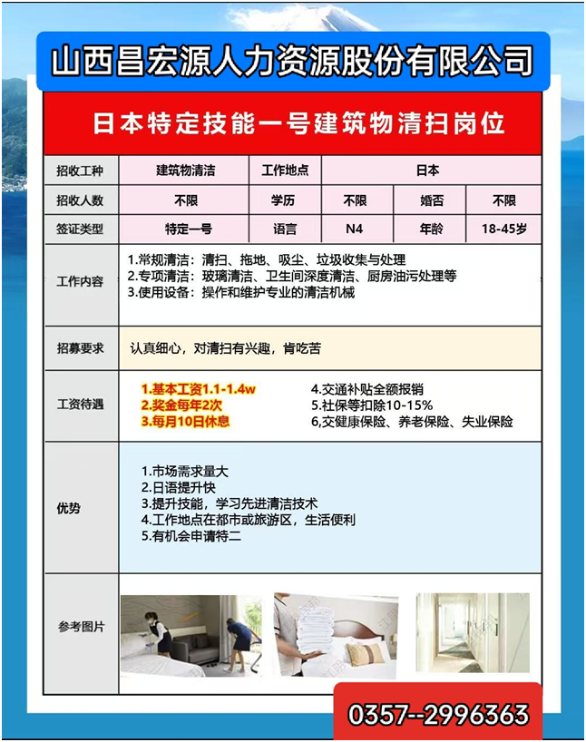 想通過赴日工作漲薪,卻卡在3個問題:① 怕日語不好找不到工作 ② 擔心公司不正規(guī)被騙 ③ 不知道自己適合哪種簽證……”以上問題不要擔心山西昌宏源人力資源股份有限公司順應臨汾市市場需求,為赴日、德就業(yè)人員提供專屬服務啦!↓↓↓